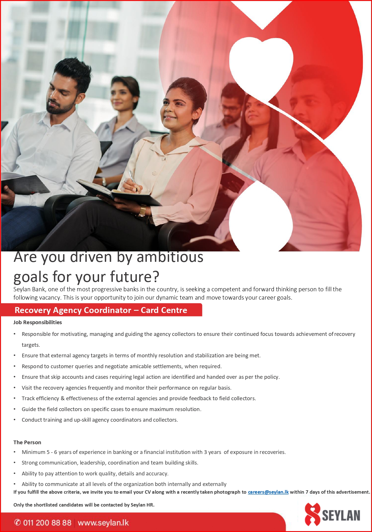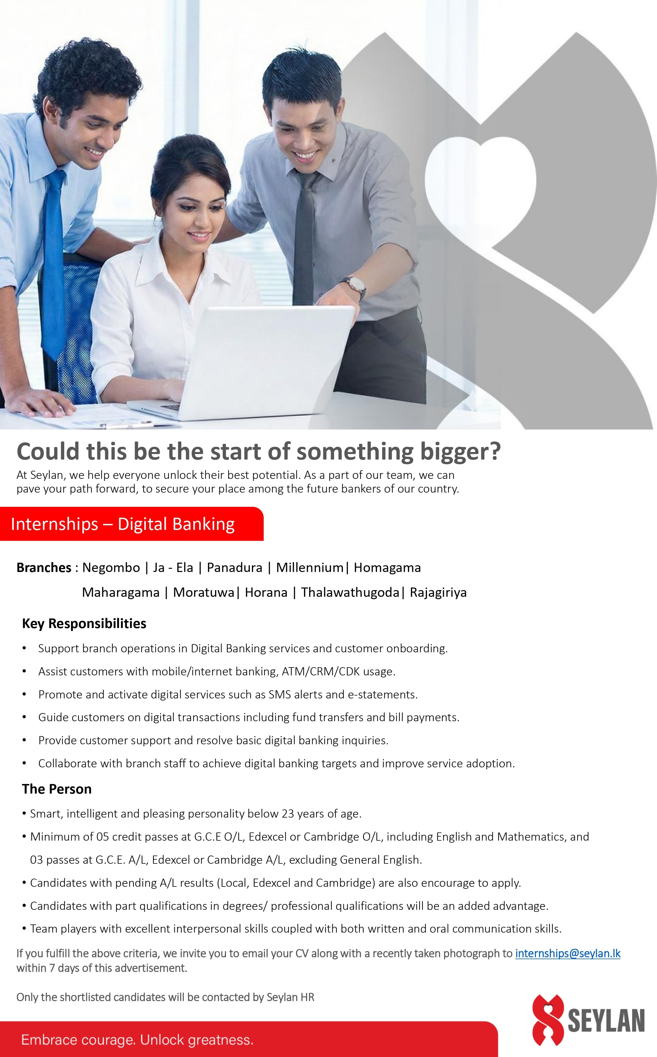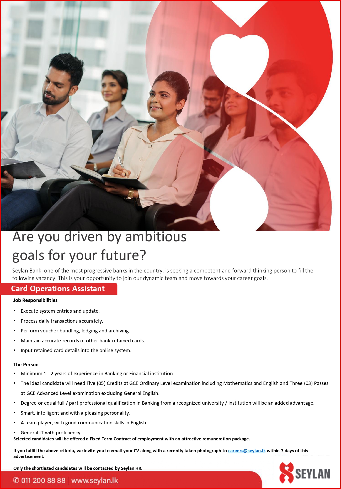 By joining the Seylan Team, you will fulfill all your aspirations - personal and professional.