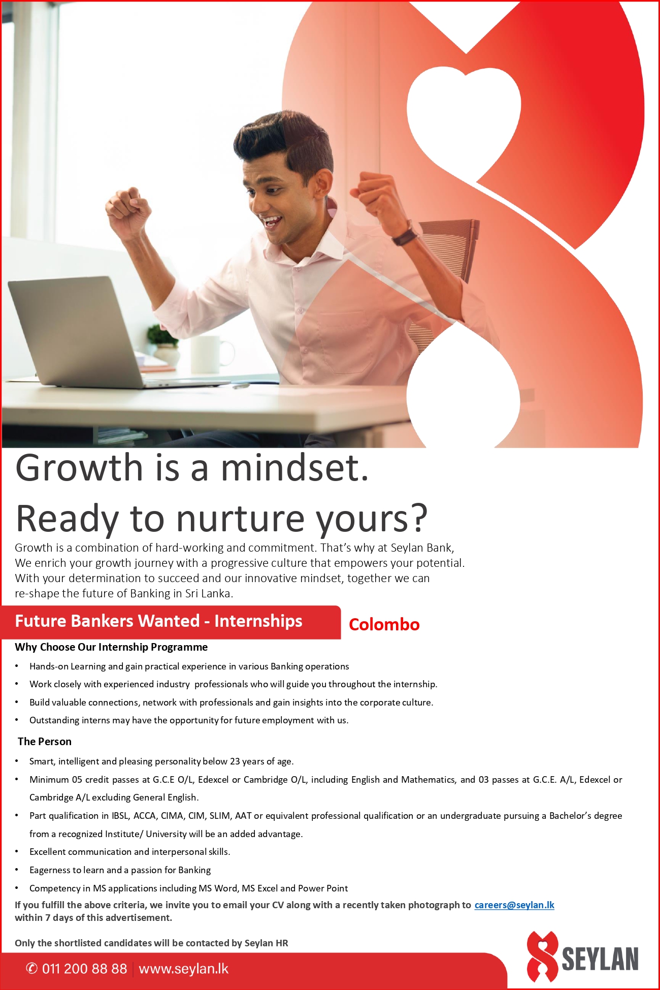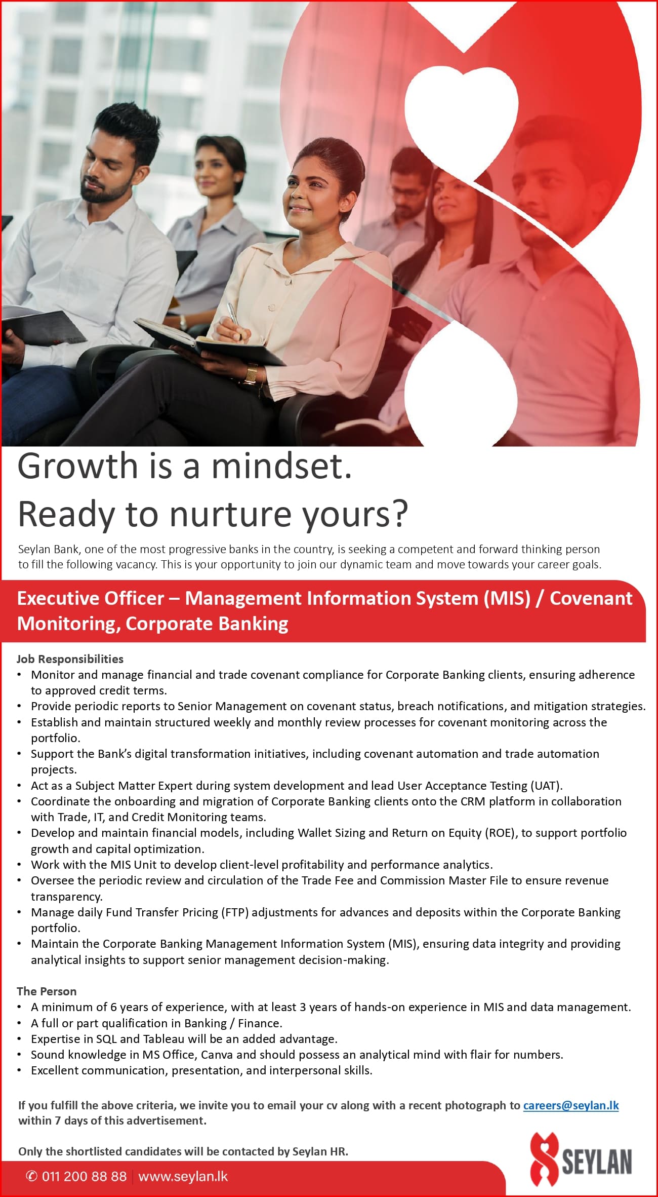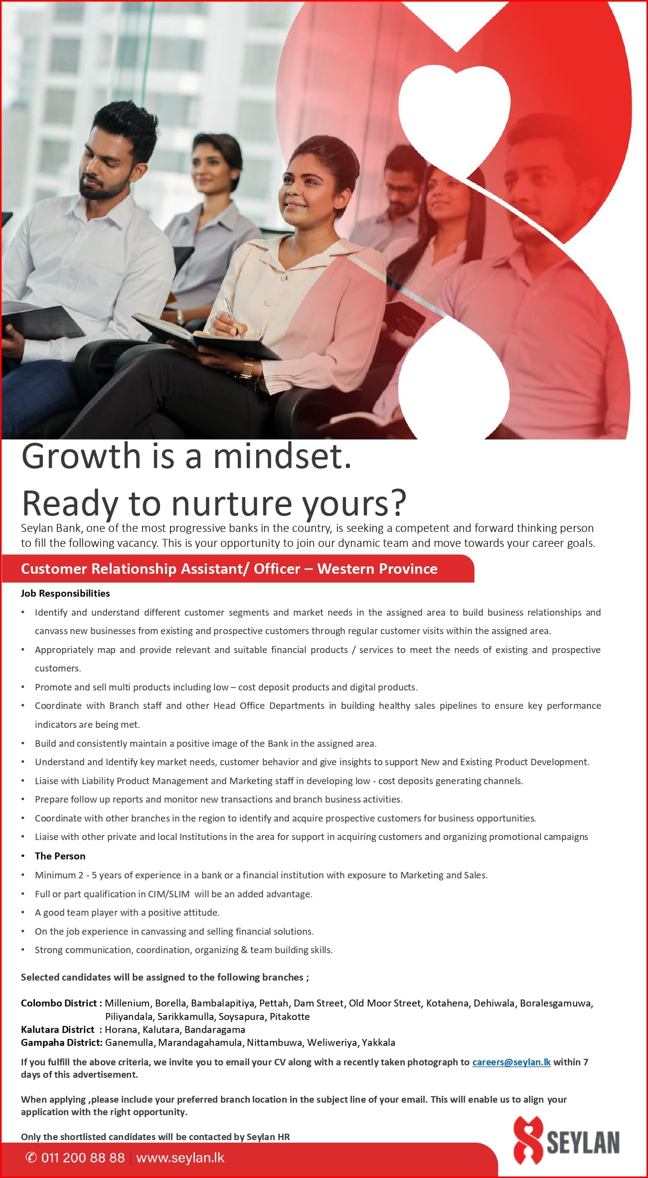 By joining the Seylan Team, you will fulfill all your aspirations - personal and professional.